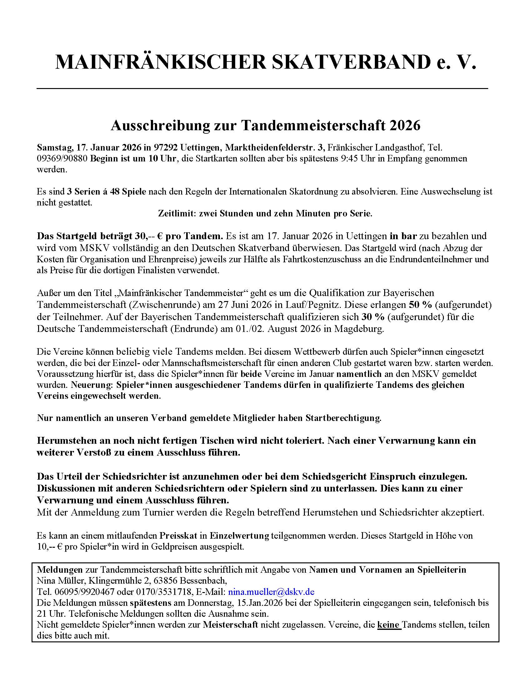 6. Dezember 2025 MSkV Kongress 2025 Am 06.12.2025 hatten wir unseren diesjährigen Skatkongress mit Neuwahlen. mehr